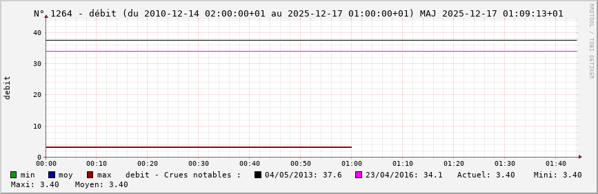 Pour la station nº 1264 située à Darcey (cours d’eau : Oze), vous trouverez :